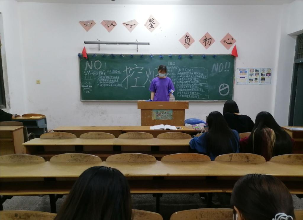 班会伊始,班委针对“吸烟有害健康”这一主题,普及吸烟的危害,如吸烟会增加患肺癌的概率,损伤心血管系统、脑血管系统等。随后,班委强调同学们应严格遵守在公共场所禁止吸烟的规定,从自身做起,积极营造无烟校园,养成健康文明的生活习惯。同时提出大家应该共同努力,争创“无烟班级”、“无烟寝室”。