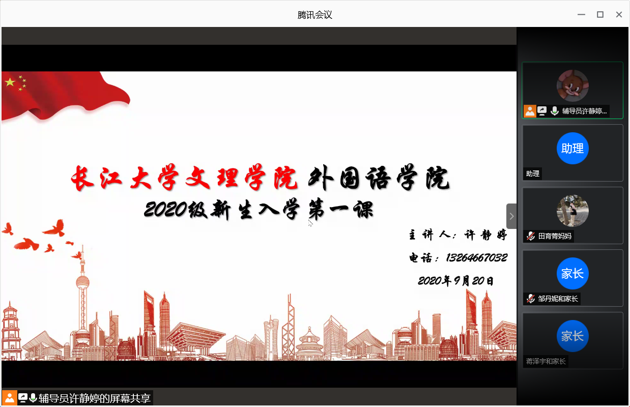 为更好地确保2020级新生平安、顺利到校报到,9月20日bevictor伟德官网在腾讯会议召开线上班会“2020级新生入学第一课”。会议由辅导员许静婷主持,2020级全体新生及新生家长、新生班主任罗胜华、彭菲、肖亚梅、陈修鸿和叶爽老师参加。