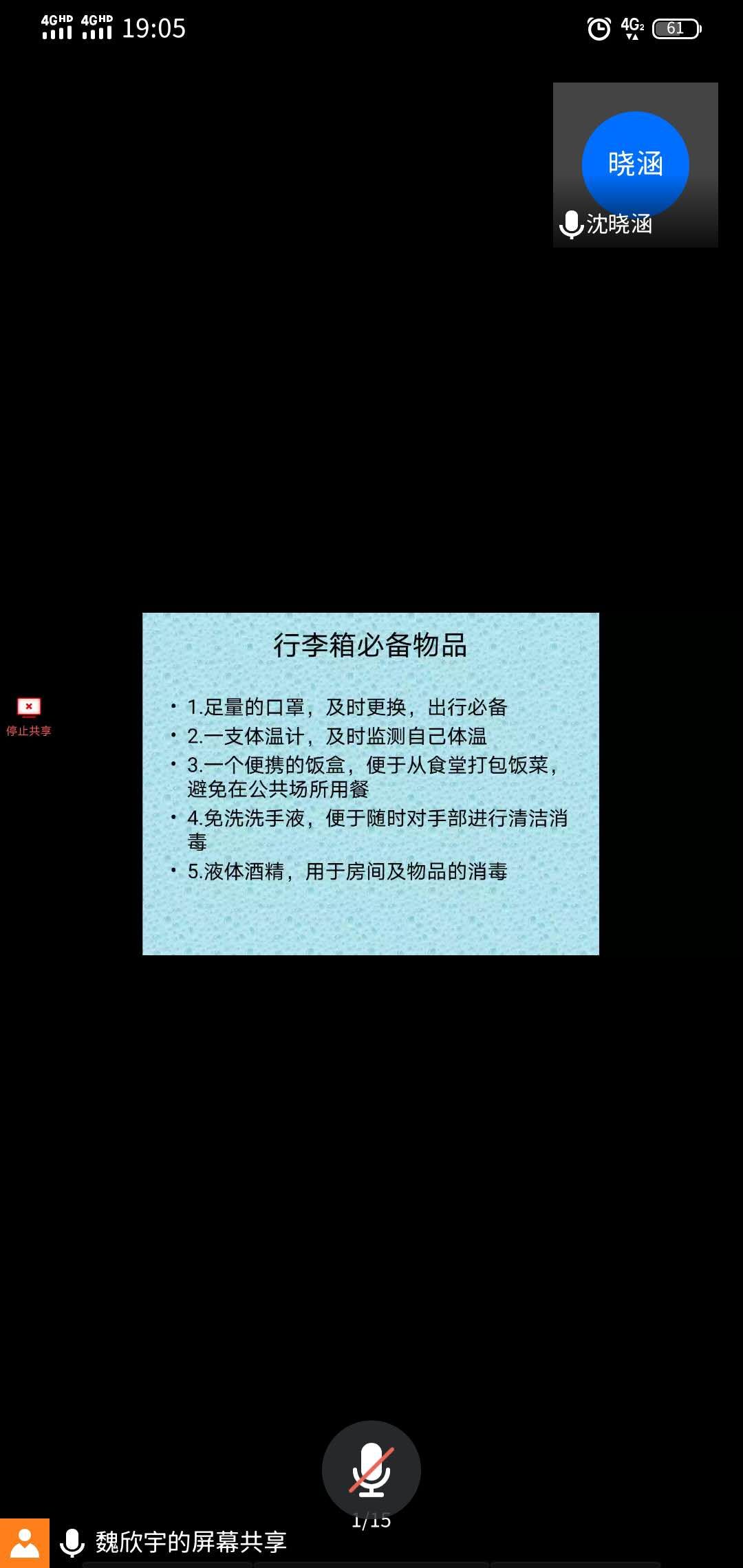 各班班委对辅导员老师提出的返校注意事项一一进行强调: 同学们需要准备足够的口罩,做好安全防护; 开学后公司会实行为期三周的封闭管理,需要带好日用品; 每个同学都应携带一支体温计,以便于随时观察身体状况; 携带消毒湿纸巾,注意个人卫生。