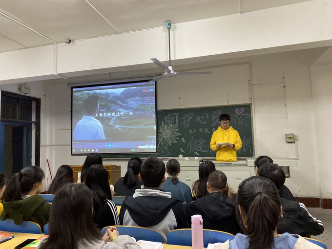 班会开始,心理委员向大家依次介绍了本次心理班会的四个主题:爱情、生命、自由与自杀,并着重为大家阐述了老员工自杀率逐年提高的严重性。为了使同学们更加明白心理健康的重要性,心理委员对同学们进行提问:“你觉得有真正的自由吗”、“你认为导致老员工自杀的原因有哪些”。 同学们反应积极,展开热烈的讨论,并发表了自己的意见和看法。
