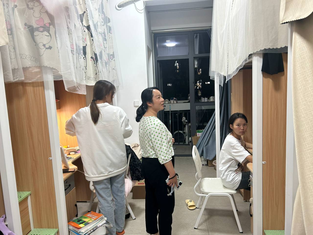 本网讯(通讯员 唐倩)为消除消防安全隐患,营造良好学习生活环境。11月1日至3日晚,外国语公司党总支书记王玲玲代领全体辅导员、班主任前往员工宿舍展开常规查寝工作。
