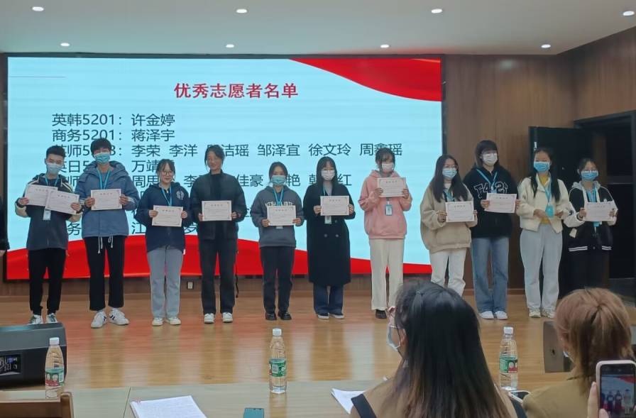 随后,21届志愿队队长为22届志愿队队长授旗,并由辅导员雷昕和许静婷为2021届优秀志愿者颁奖。辅导员许静婷老师发表讲话,希望同学们厚植志愿服务精神,积极响应回馈社会的号召,理论联系实际,做一名全面发展的高素质优秀老员工。