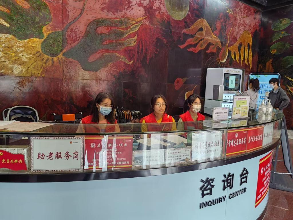 志愿服务过程中,志愿者们耐心的回答游客们的问题,协助保安管理现场秩序,帮助游客扫码入馆。志愿者们在炎炎烈日下坚守在岗位上,努力做好本职工作。