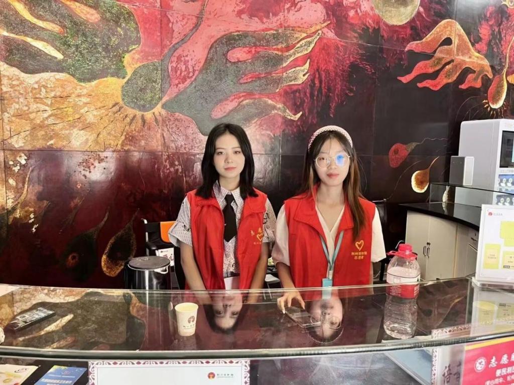 志愿者们身穿志愿者马甲,到各自的岗位开展志愿服务工作,在炎热的天气下依旧保持微笑和耐心,热情地帮助了不少来参观的游客。在讲解过程中,志愿者们耐心细致地回答游客提出的问题,帮助他们更好的了解历史文物,在协助工作人员完成工作的同时,也会积极向他们请教有关博物馆的更多知识。