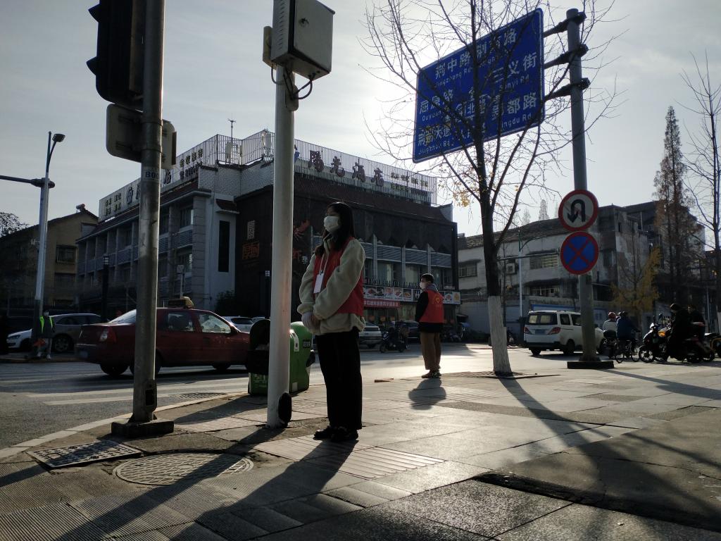 志愿者们接受了交通安全知识培训和相关细节安排后积极上岗,两人一组分别负责荆州区通会桥社区的各个路口,清理点位附近的果皮纸屑等垃圾、劝导行人不文明的行为以及劝导市民将共享单车摆放整齐。