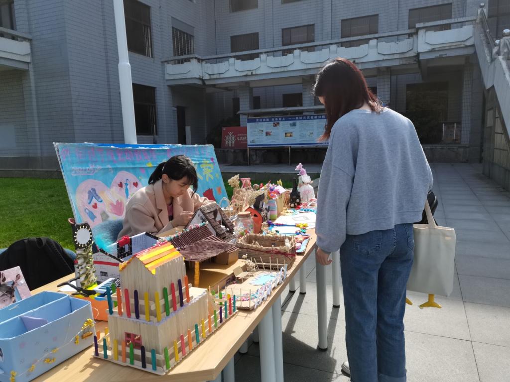 整个活动现场气氛热烈而又温馨,青工部干事许金婷说:“虽然每件手工艺品卖的价格不高,但是这每一分都是我们同学对志愿服务的贡献。”