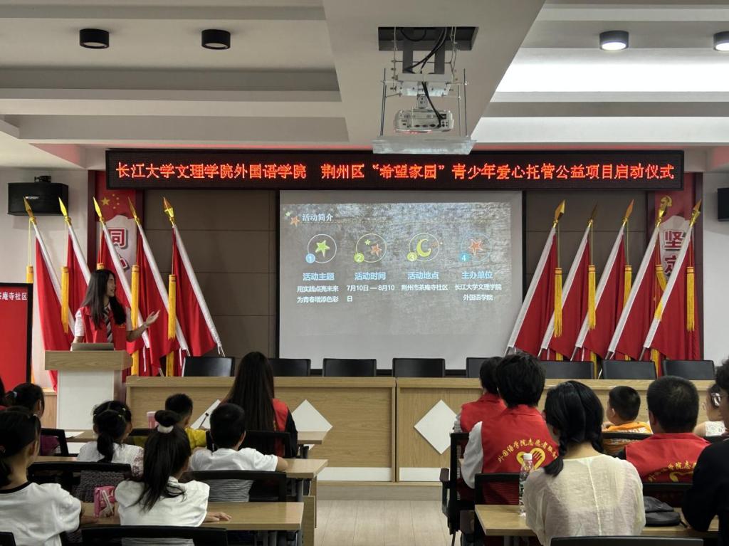(通讯员 侯韦)7月7日上午,bevictor伟德官网在茶庵寺社区党员群众服务中心举办了一场题为“用实践点亮未来,为青春添加色彩”的青少年爱心托管公益项目启动仪式。荆州区团委负责人、外国语公司党总支副书记刘鋆锋、辅导员及员工志愿者参加。