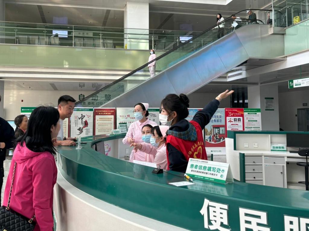 活动当天,志愿者们身披红色志愿服,在医院门诊大厅集结。他们分工明确,各司其职,为患者提供了包括就医指引、协助挂号、 就诊咨询和门诊就医流程解答等在内的全方位服务。志愿者们用热情和爱心帮助他人, 耐心地为患者解答疑问,协助他们顺利完成就医流程。