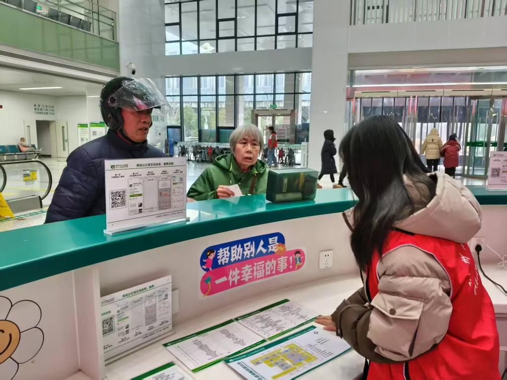 周末常态化服务筑牢就诊保障。志愿者接受医院专业培训后,身着红色马甲开启全流程导医服务。在门诊大厅、自助机旁、缴费台等区域提供导诊咨询、挂号协助、报告打印等服务,日均服务超200人次,有效缓解患者就医压力。同时设置“小组长”责任制,确保个性化服务落实到位。