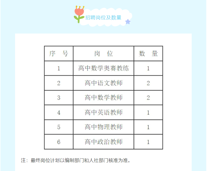 1.硕士研究生及以上学历,专业对口,高中阶段曾获省赛区一等奖及以上者或有中学奥赛培训经验者优先,硕士研究生年龄在30周岁以下,博士研究生年龄在35周岁以下(截至2024年1月1日)。