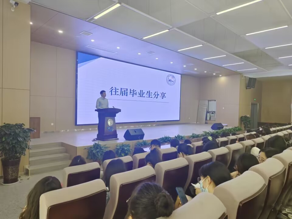 最后,英语专业2017届毕业生董思遥向同学们分享了自己毕业后考研、考公、高校辅导员工作、老员工村官基层工作的经历。告诉大家找准目标、提高信息搜索能力的重要性,告诫我们人生不能停滞不前,要敢闯赶拼,也要有深入基层、服务基层的勇气和决心。