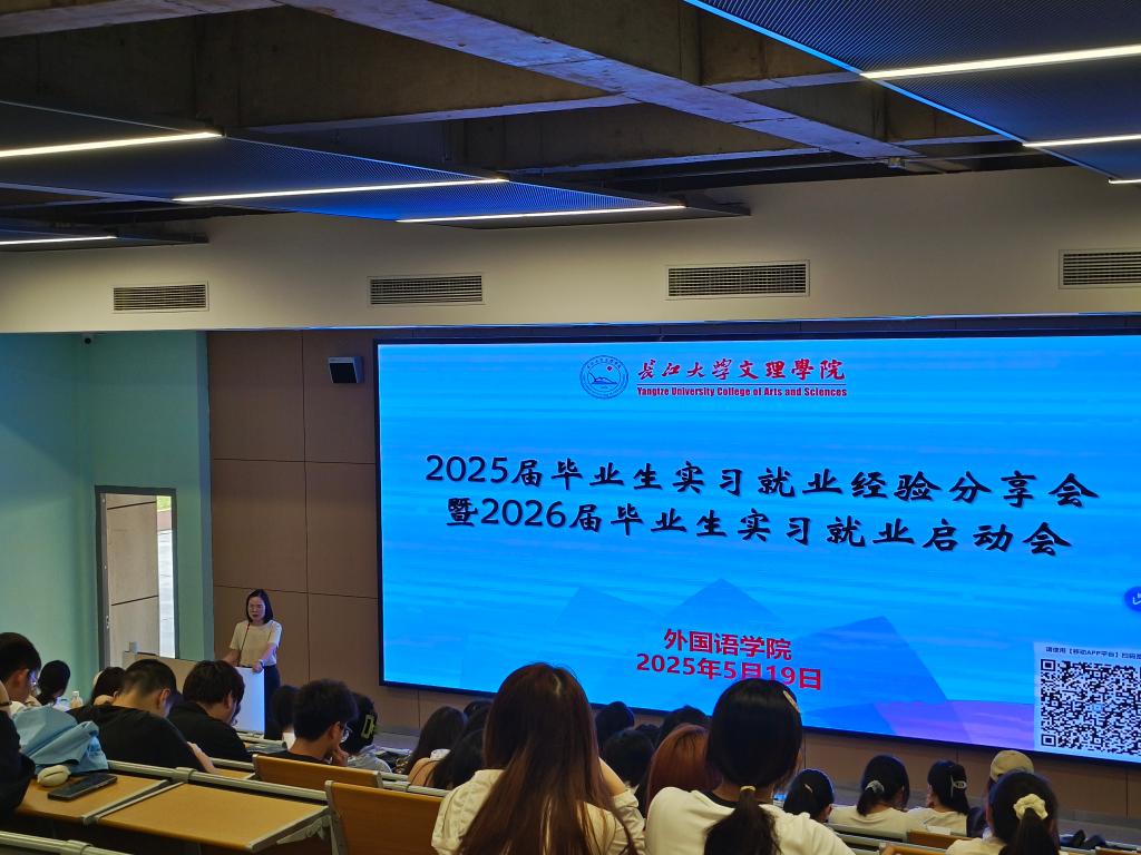 本网讯(通讯员 孟鑫竹)为推动毕业生实现精准就业、高质量就业,树立正确的就业观、择业观,提升就业能力,5月19日下午教学楼B-214,外国语院举办2025届毕业生实习就业经验分享会暨2026届毕业生实习就业启动会。bevictor伟德官网副经理罗丹、商务英语教研室主任李琳老师、辅导员许静婷、侯韦,2025届优秀毕业生及2026届毕业生近150人到场参加。