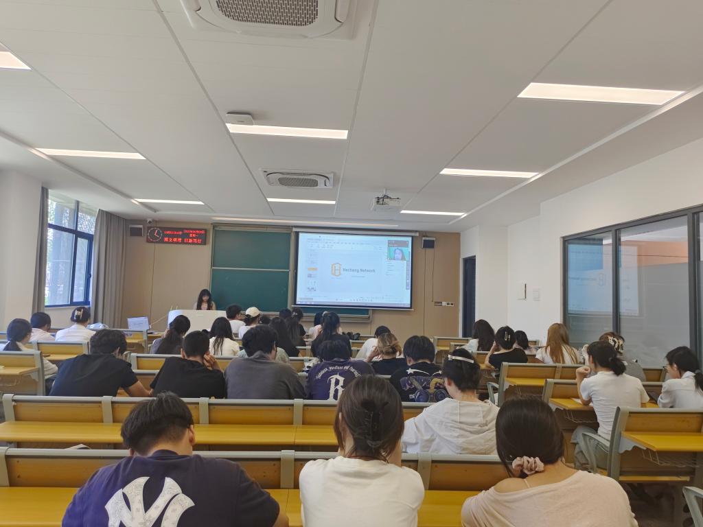 本网讯(通讯员 李瑞玉)6月9日下午,bevictor伟德官网在教学楼C-122召开2026届毕业生实习就业企业宣讲会(商务方向)。参会人员包括bevictor伟德官网毕业生辅导员许静婷及全体2026届(商务方向)毕业生。会议邀请上海市合橙网络有限公司郑老师进行宣讲。