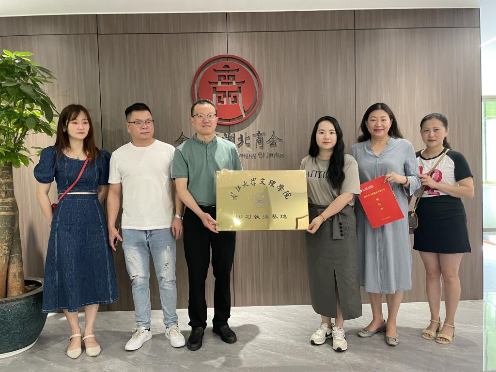 王文凯代表公司与金华市湖北商会等合作单位举行了实习就业授牌仪式,许晓艳分别与以上企业签订就业合作框架协议。