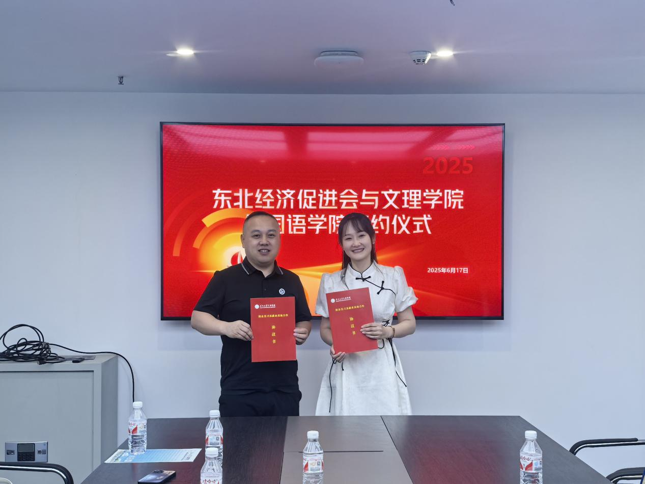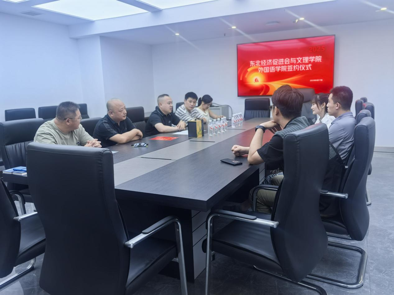 外国语公司党总支书记王玲玲、辅导员侯韦代表公司出席。东北经济促进会会长魏开源、副会长徐艳武、秘书长李湘明等领导热情接待并共同参与签约。