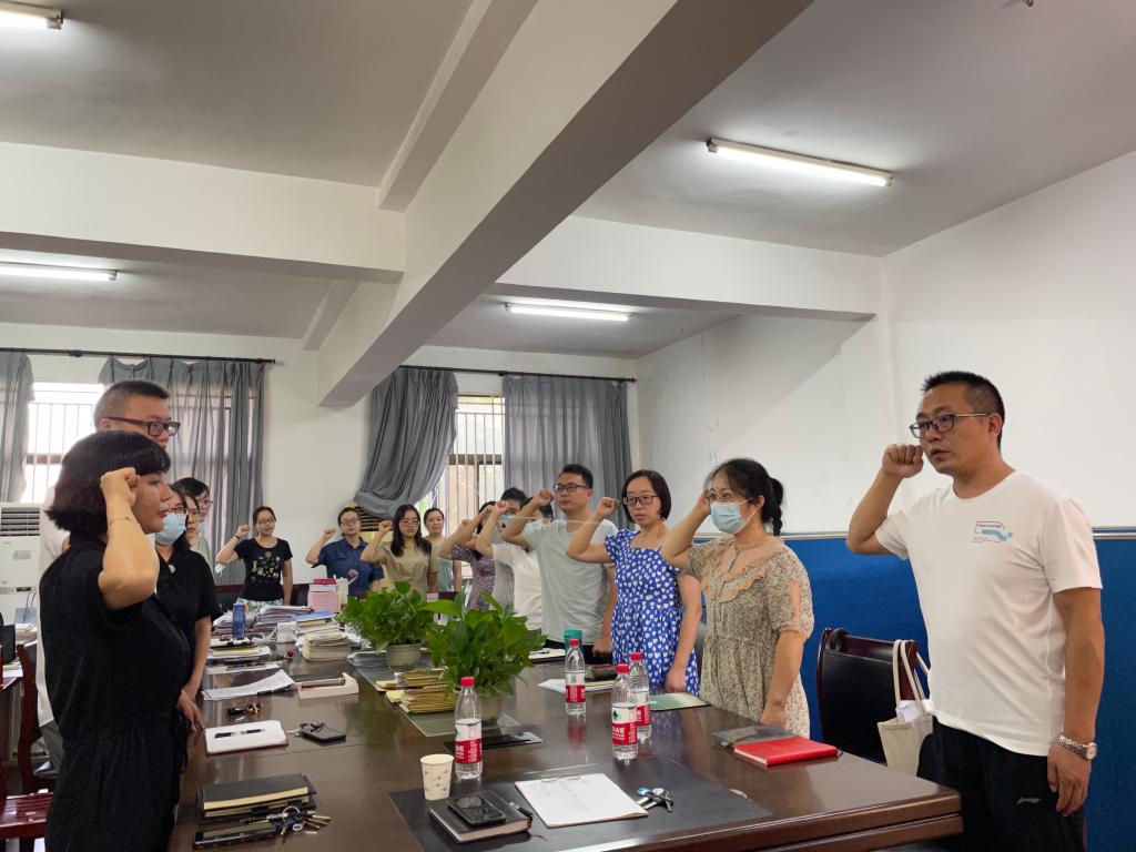 随后,全体党员教师开展支部主题党日活动。全体党员重温入党誓词;集体诵读党章第十章、第十一章;集体学习《中国共产党简史》第四章。最后,全体党员开展主题研讨:党员干部如何做到“清廉有为”?
