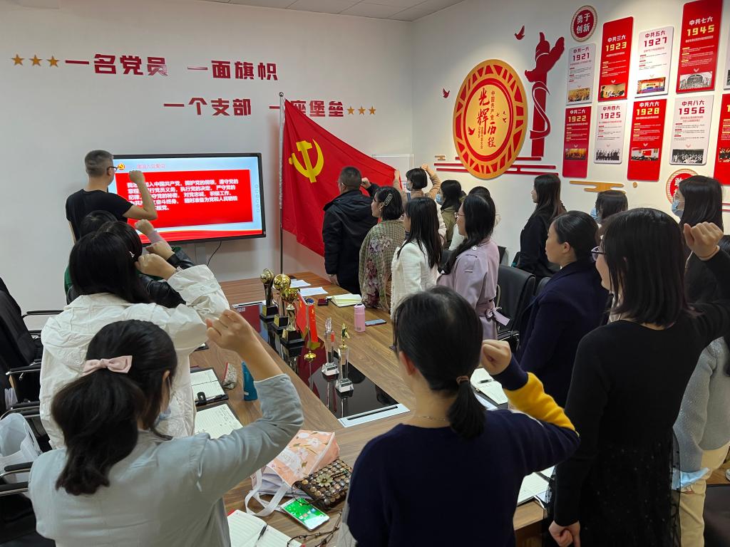 会议伊始,bevictor伟德官网召开支部主题党日活动。刘鋆锋带领全体党员重温入党誓词;集体诵读党章;学习《中国共产党简史》内容,习近平总书记在中央人才工作会议上的讲话(2021年 9 月 28 日),习近平总书记关于弘扬爱国主义精神重要论述综述 (2021 年 10 月 1 日),并开展主题研讨。