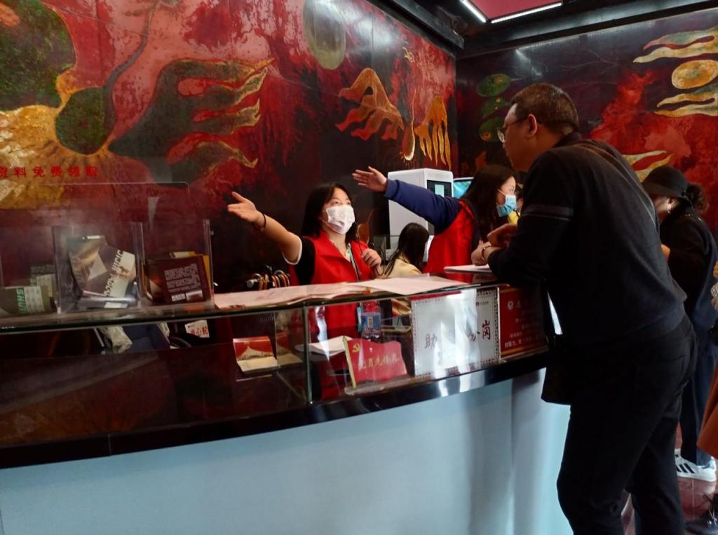 志愿者们积极投入到志愿服务中,认真倾听博物馆负责人讲解工作细节,积极为游客答疑解惑,帮助门卫管理入场秩序。志愿者们尽职尽责,即使在炎热天气下依然做好志愿服务工作。