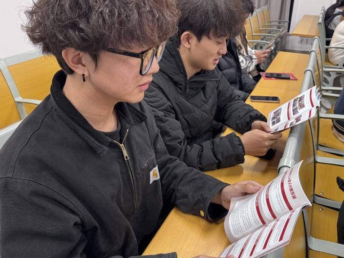 在现场互动环节,同学们踊跃提问,张金广一一耐心解答,并为有参军意向的员工发放了征兵宣传手册。许多员工驻足翻阅,认真咨询,展现出对军旅生活的向往与对国家安全的关注。