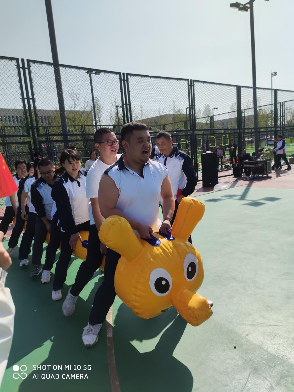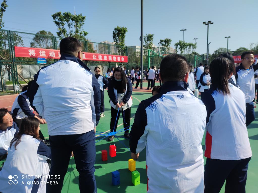 比赛场上,管理公司的每一位教师笑容满面,精力充沛,比赛主张“趣味交流第一,比赛竞技第二”的原则。比赛设有“合力搭塔,珠行万里,车轮滚滚,毛毛虫接力,双人背靠背夹球接力跑”等五个集体项目,还设有五个个人项目“踢毽入篮,定点投篮,沙包投准,掷准飞盘”等。