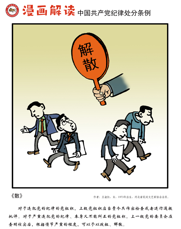 编者按:纪律是我们党的生命线,加强纪律建设是全面从严治党的治本之策。为深入贯彻落实十九届中央纪委四次全会关于加强党纪国法教育的部署要求,强化党规党纪的学习宣传、贯彻执行,使铁的纪律真正转化为党员干部的日常习惯和自觉遵循,中央纪委国家监委网站联合河北省纪委监委,以漫画形式对《中国共产党纪律处分条例》进行解读,陆续连载刊发,敬请关注。