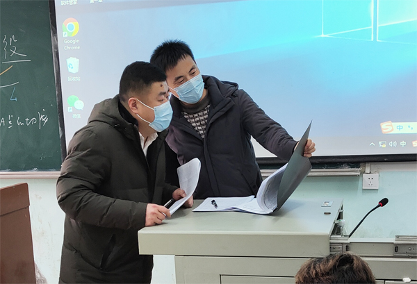 西校区共有7个院系30门课程在第二大节课进行,于永伟走进教室,问候授课教师和员工,仔细核对课表、清点到课人数。授课教师准备充分,员工状态积极饱满,教学工作尽然有序。