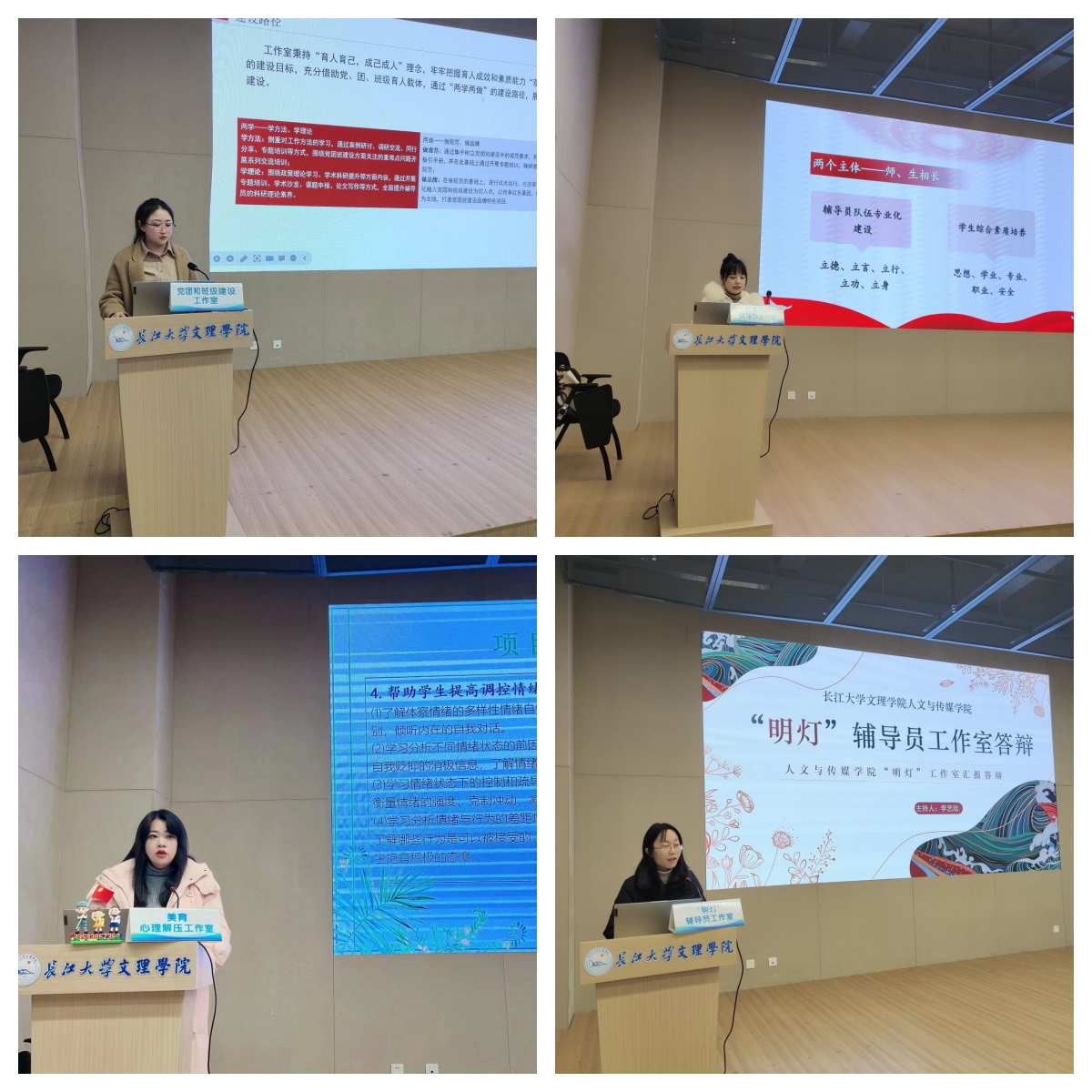 首届辅导员工作室共有来自10个部门的11个项目参与答辩,项目主持人根据抽签顺序围绕工作室申报方向、前期开展工作、建设思路、实施计划与措施、预期成果等方面依次进行汇报。辅导员工作室内容涵盖员工党建、网络思政、学风建设、资助育人、心理健康、职业生涯规划、创新创业等多个类别。