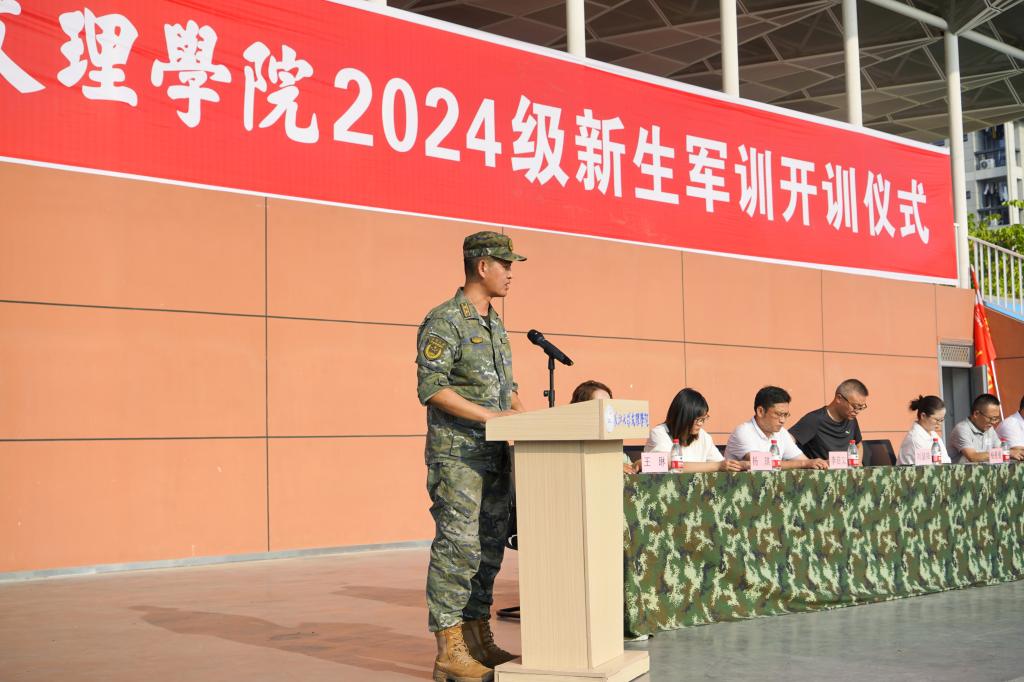 张坤在开训仪式上指出,军训是新生入学的必修课,是青葱岁月中的难忘经历,希望通过此次军训能播出强国梦想、锻造精神品质、交出精彩答卷。他要求教官能牢记职责使命,牢记十个严禁,以高标准、严要求、活方法完成军训任务;要求参训学员敢于吃苦、敢于争先、热爱集体、珍惜荣誉,以优异的成绩圆满完成此次军训。