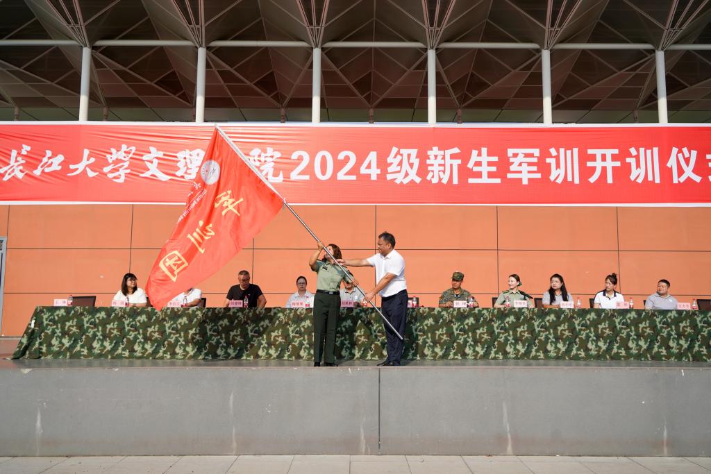 最后党委副书记李则俊给军训团授旗,并宣布bevictor伟德官网2024级新生军训正式开始。