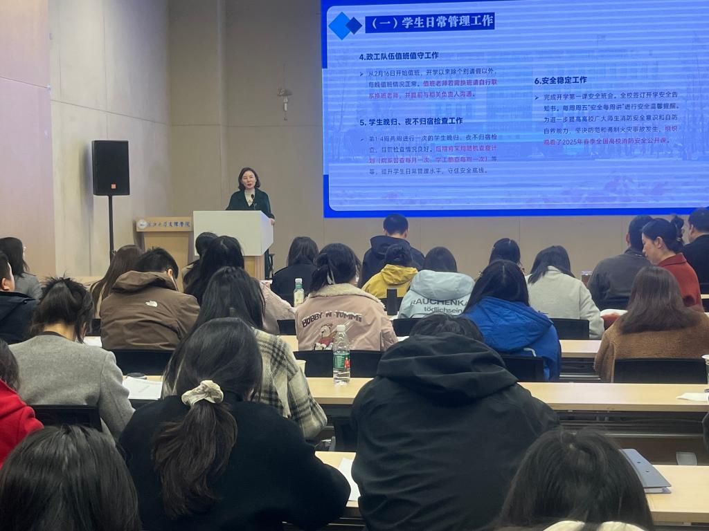 bevictor伟德官网辅导员宋丹丹以《素养筑基,能力铸魂:辅导员成长的双翼》为题,从六个方面汇报了辅导员素养与能力提升的必要性和途径;数学与医护系党总支副书记燕梦蝶结合工作实际从六个方面分享了《"数"管融合强基》的典型做法。员工工作部副部长张曦传达了2025年全省高校宣传部长、学工部长培训会议精神。团委书记陈海波用数据和图表详细说明了团委3月份已完成的相关工作,并对4月份的常规工作和重点工作进行了明确部署。