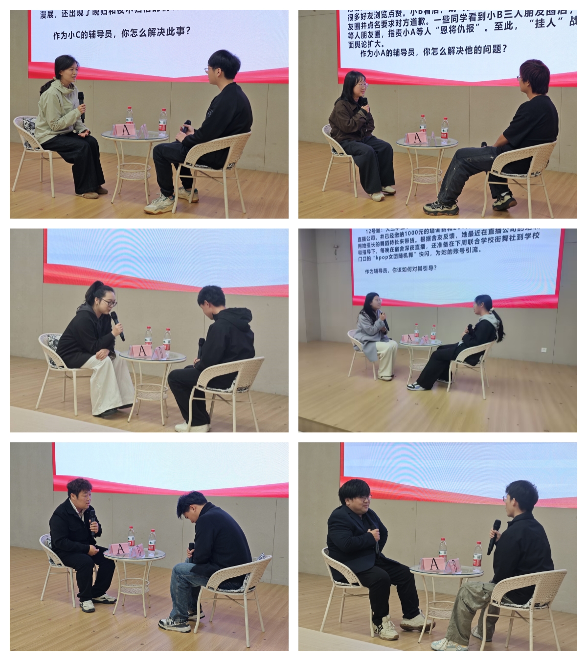 大赛初赛以闭卷笔试形式开展,聚焦党的创新理论、思政工作政策文件等专业知识,最终12名辅导员选手脱颖而出晋级决赛。决赛分为案例研讨和谈心谈话两个环节,全面考察辅导员的综合能力。