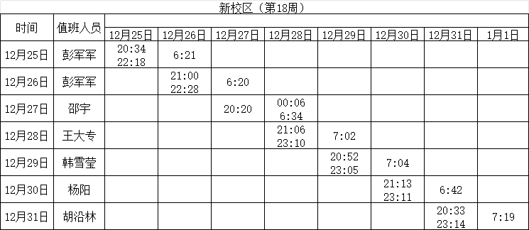 2023-2024学年第一学期第18周学工人员寝室值班通报