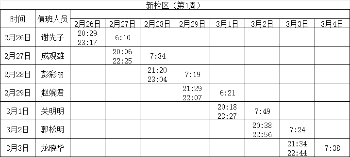 2023-2024学年第二学期第1-2周学工人员寝室值班通报