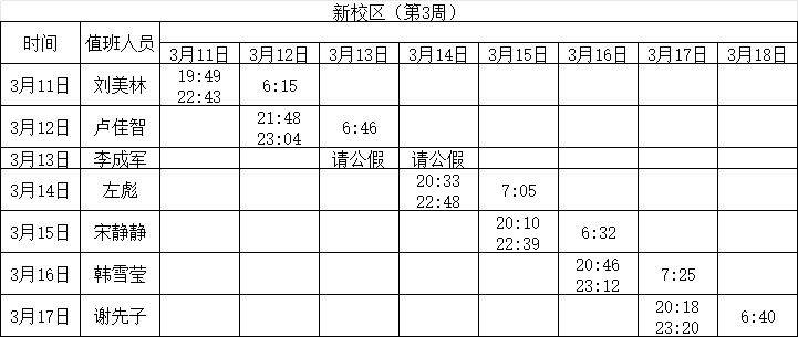 2023-2024学年第二学期第3周学工人员寝室值班通报