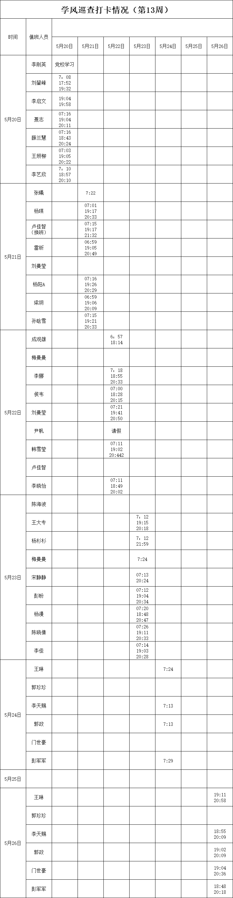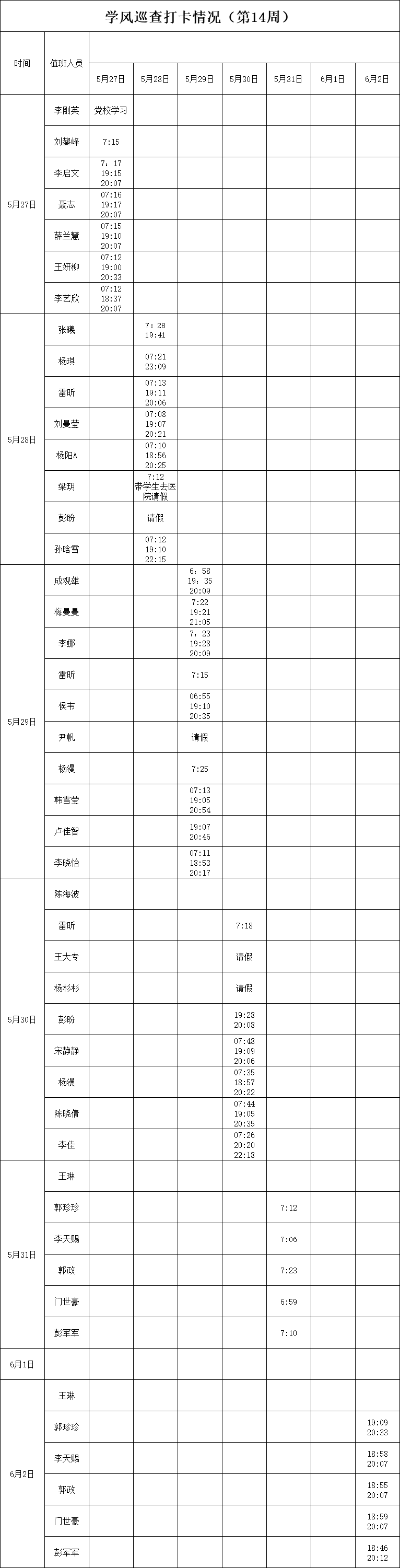 2023-2024学年第二学期第13-14周学风巡查打卡情况公示