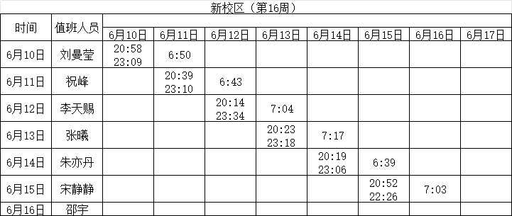 2023-2024学年第二学期第16-17周学工人员寝室值班通报