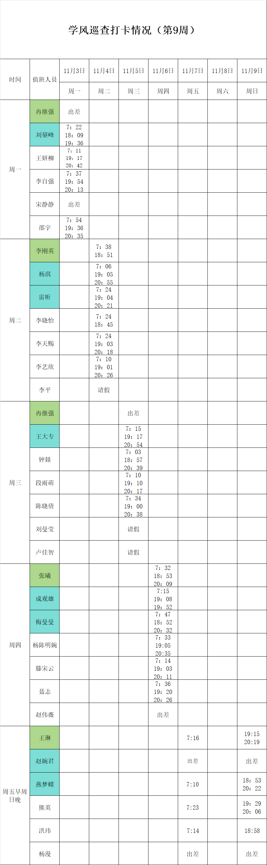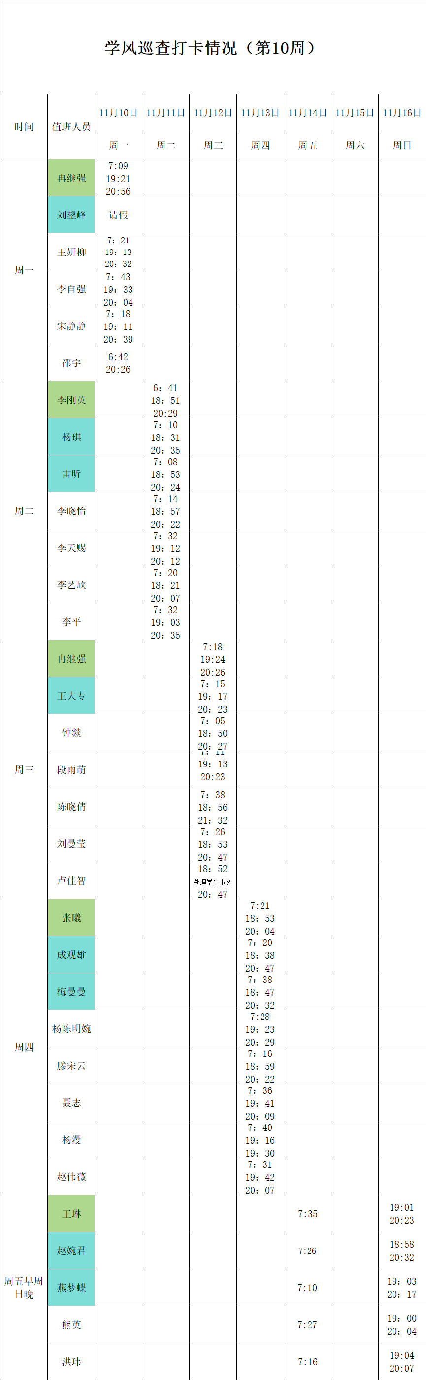 2025-2026学年第一学期第9-10周学风巡查打卡情况公示