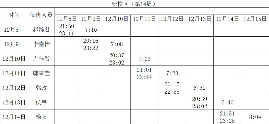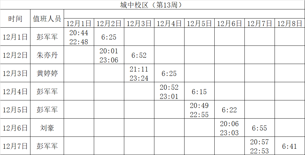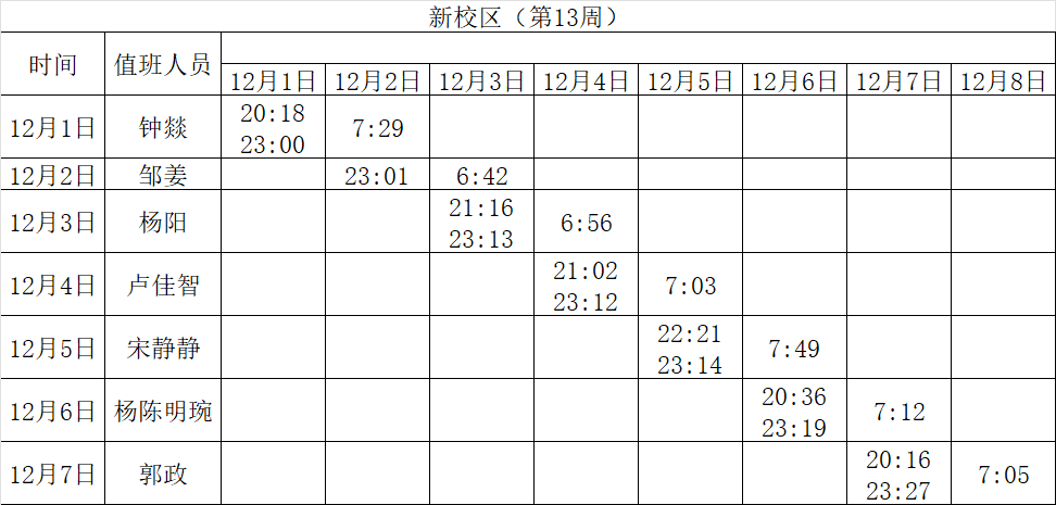 2025-2026学年第一学期第13-14周学工人员寝室值班通报