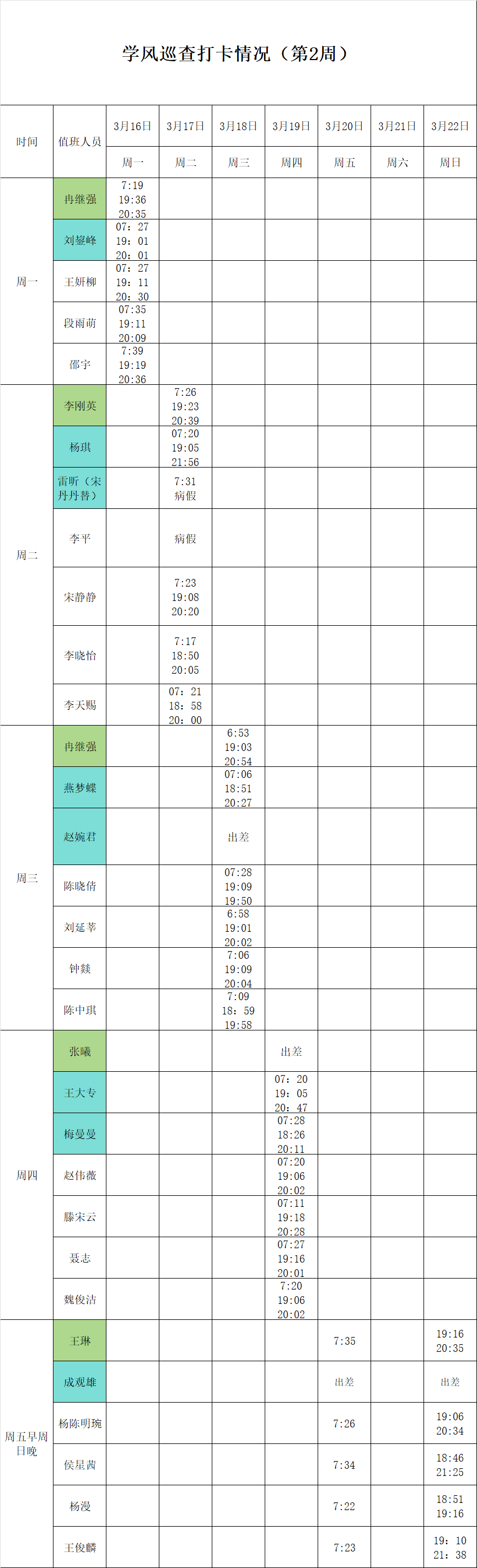 2025-2026学年第二学期第1-2周学风巡查打卡情况公示