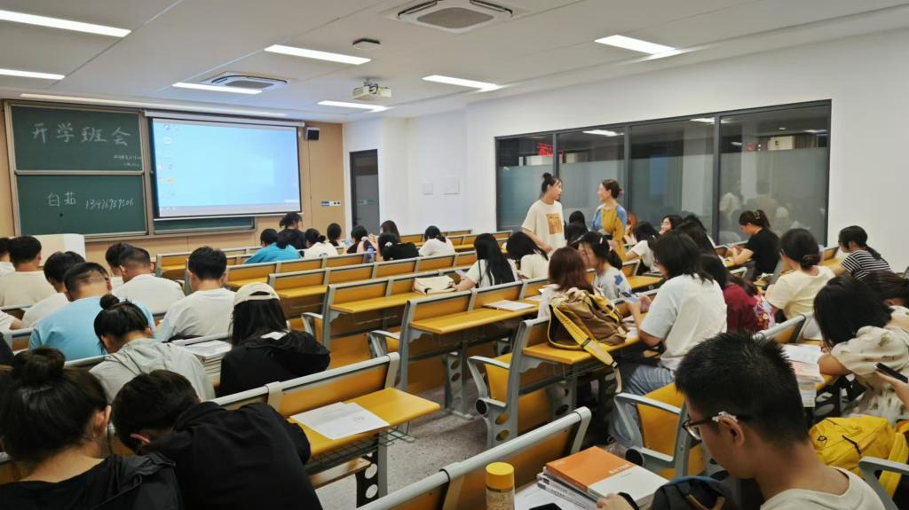 本网讯(通讯员 成观雄)为引导同学们迅速回归大公司园生活,明确学习目标,增强安全意识,9月1日晚上7点,全院班主任、辅导员于开学之际面向各班员工召开“开学第一课——收心班会”主题班会,同时员工工作部工作人员到现场检查工作。此次班会各班班主任、辅导员主要围绕校园安全教育、新学期学业规划、心理调适等方面展开。