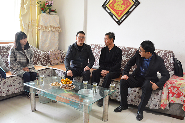 王文凯(右二)慰问何东旭的家属