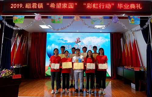 本网讯(记者 刘磊 通讯员 王正义)8月4日,2019年昭君镇“希望家园”“彩虹行动”毕业典礼在该镇香溪社区举行,一批优秀志愿者和优秀学员在典礼上受到表彰,公司“与爱同行”志愿者团队荣获“优秀志愿服务团队”荣誉称号。公司党委书记朱继平出席典礼并讲话。