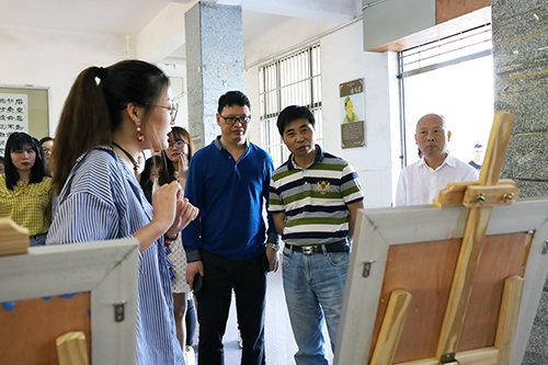 本网讯 5月28日下午,人文系学前教育专业毕业设计美术作品展在城中校区落幕。此次共展出6名毕业生设计的18幅作品,包括动漫卡通、京韵人物、民族风情等题材,展期一周,吸引了各系部员工前来观展。展览期间,作者现场讲解创作过程,阐释作品美学内涵。副经理郭睦庚、党委副书记孙细望来到现场观展,对同学们在大学四年取得的成绩给予充分肯定,并向大家送上最真挚的毕业祝福。 通讯员 徐霄 邓永涛 摄影报道 (责任编辑 刘磊)