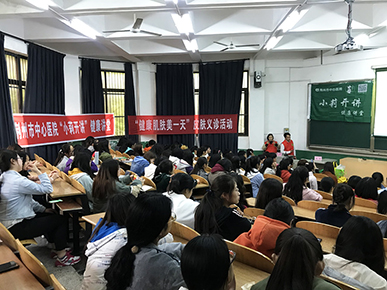 本网讯 4月9日,外语系在城中校区1-203教室举办皮肤健康知识讲座。荆州市中心医院皮肤科副主任孙毅博士、医师张丽分别围绕“面部皮肤护理”与“春季预防过敏”两大主题,介绍了皮肤护理基本知识,指出了季节性皮肤疾病的防治方法,针对痤疮和春季皮肤过敏提出有效鉴别方法和治疗建议。互动环节,该院皮肤科主任曾同祥、副主任柳兵、护师邬清芝就员工关心的问题予以一一解答。当天,来自各系的百余名员工现场聆听。 员工记者 黄茜 通讯员 辛叶 摄影报道 (责任编辑 刘磊)