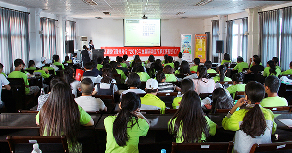 本网讯 9月18日下午,交通银行荆州分行2016年 “金融知识进万家” 宣传活动在公司城中校区学术报告厅开展。员工工作处、交通银行荆州分行工作人员及近百名新生参加活动。活动以“多一份金融了解,多一份财富保障”为主题,针对近期频出的金融安全问题,为在场同学分享了“防诈骗”和“反假币”的知识、经验,同时,围绕“电话诈骗、网络诈骗、刷卡消费诈骗”等热点话题,进行金融知识的宣讲。交通银行荆州分行行长王曦表示,在科技日益发展的年代,金融诈骗层出不穷、防不胜防,作为老员工,了解金融知识、提高防范意识刻不容缓。 刘磊 王抒曼 摄影报道 (责任编辑 刘磊)