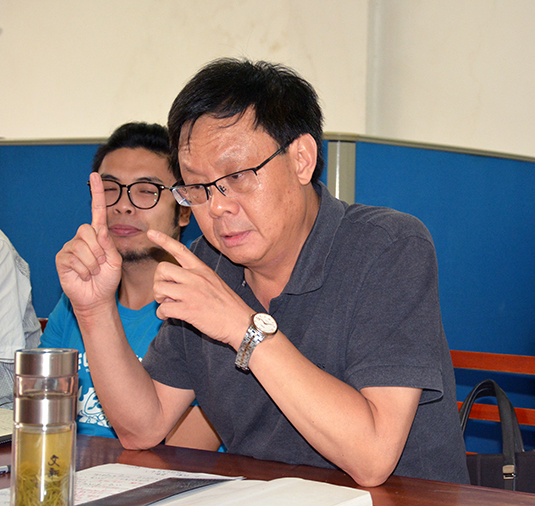 经理梅平走进外语系教师办公室,坐在正在开会的青年教师中间,倾听来自一线的心声。