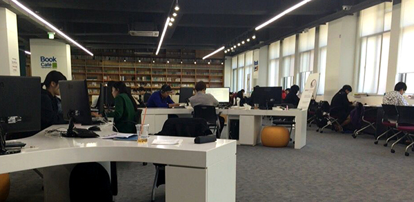 刘馥说,韩国老员工学习的压力是很大的,公司的每个人几乎都在拼命学习。如果不想在图书馆内学习,也可以到公司的员工会馆去,那里同样也配备自习室、咖啡厅等。无论在哪都有很强的学习氛围。