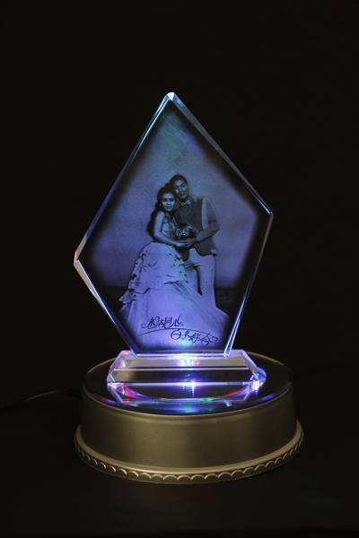 “哦,这是为公司注资的浙商老板的3D打印水晶雕像。3D打印机正式开工的第一天,我们便特地为他量身定做了这个‘见面礼’。”