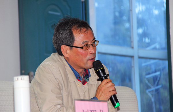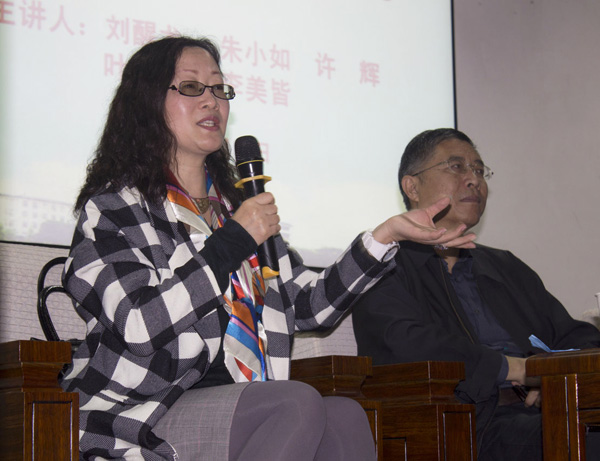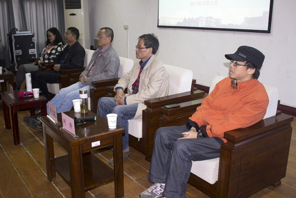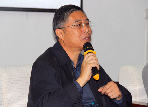 公司经理王金琼(右)、沈光明教授(右二)等聆听讲座