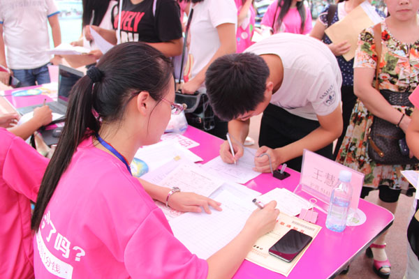 在各迎新站点、校园绿色通道、缴费现场、员工体检处等15个迎新接待点,300名训练有素的老员工志愿者满怀热情上岗迎新,负责协助相关工作人员接待前来报到的2014级员工和家长。当天,志愿者们精神饱满,统一着粉红色工作服,佩戴工作证上岗。